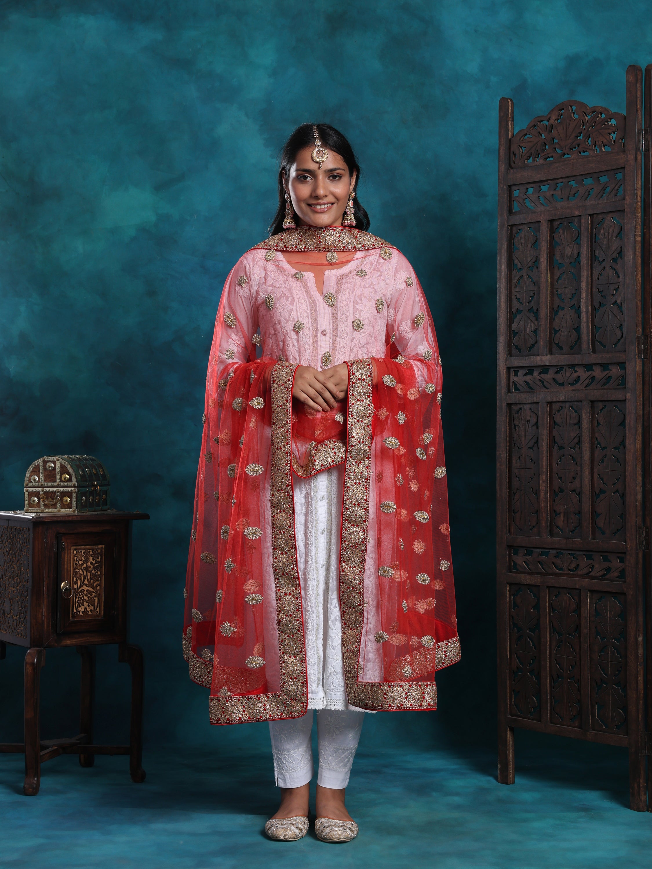 The dupatta is perfect for a dual to a bridal lehenga and theme wedding for all guests and family members. It also pairs well with the sherwani achkan for men.